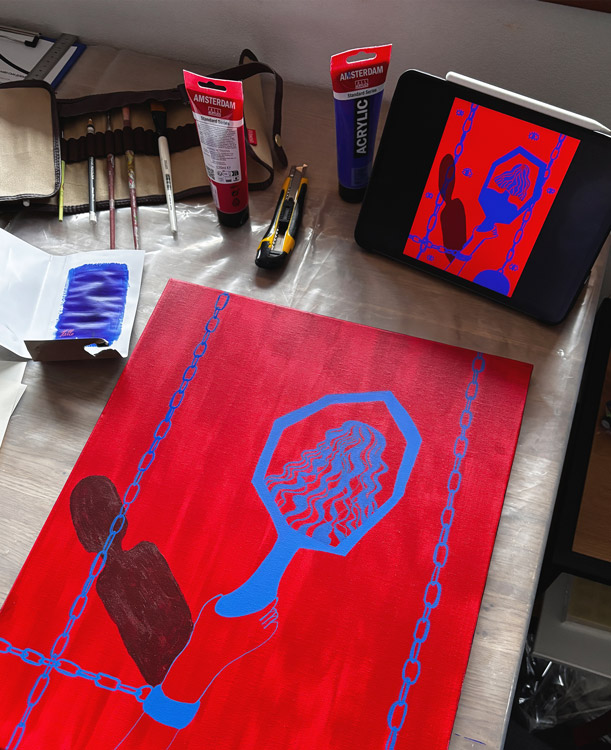 Тези избори не са еднократни. Те се случват отново и отново – ежедневно, през различни етапи от живота. Затова работата е изградена като цикъл от четири канави: големите платна символизират големия, посоков избор, а малките – повтарящия се, поддържащ избор, ритъма и цикличността на преживяването. Жената Survivor живее с преживяното завинаги, но начинът, по който го носи в себе си, се променя във времето – в зависимост от подкрепата, средата и вътрешното ѝ състояние.