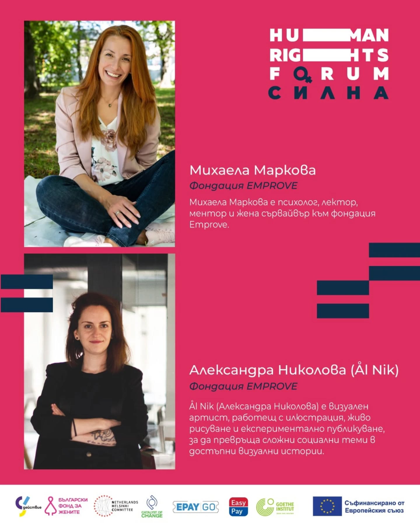 Организира се с финансовата подкрепа на Български фонд за жените, Нидерландски хелзинкски комитет и Европейския съюз.