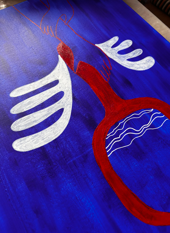 Четирите картини представят съзнателните и подсъзнателните избори, които една Жена Survivor прави, както и факторите, които я насочват в различни посоки. Въпреки че пред нея стоят безброй възможни пътеки, тук фокусът е върху две от тях: пътя на страха и срама (червените канави) и пътя на подкрепата, мира и свободата (сините канави).