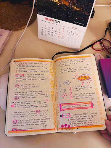 Art is a lot about shared experiences. That is why we react more to some artworks than others - and each one of us sees a different thing in them. That is why, to some scholars, art is not the object itself, but what happens between you and that object. This is why Brian and Bette stress the fact that “as artists we don’t finish it: we start it”. We send an idea out in the open and then the people, the community, nurture it (or kill it :). What is precious about that idea is that it gives us a sneak peek into an alternative reality, or a potential reality. For bell hooks, “art exists to consider what is possible - how else things could be - not just what is”. This really triggered me, because it was one of the main motivations for me to create Our Future Is Somewhere Here, and I am dying to create a space where people can imagine the future, talk about it, and consider the importance of their choices along the way.